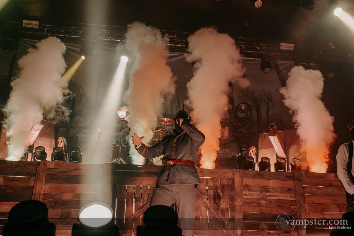 Verschnaufpausen gibt es nicht, während das Quintett – authentisch gekleidet in den Uniformen deutscher Soldaten des Ersten Weltkriegs – einen sich im Gehör festfressenden Song nach dem nächsten spielt. Die Wucht ist dabei nicht nur musikalisch spürbar: Zwischen den Stücken laufen eingespielte Erzählpassagen, die das Grauen greifbar machen und den Zuhörer direkt ins Schützengraben-Szenario ziehen. Plötzlich ist das hier nicht mehr nur ein Konzert, sondern ein beklemmendes Hörspiel mit Soundtrack.