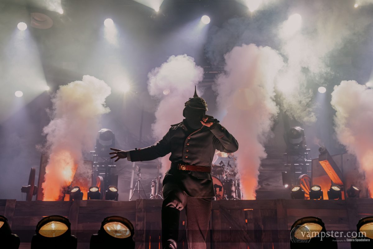 Was folgt, ist keine klassische Show, sondern ein durchinszenierter Frontalangriff. Beim Titel „Schuss, Blitz, Knall“ gibt es eine wahre Kanonensalve, die beim Stück „The Yankee Division March“ von meterhohen Feuerfontänen abgelöst wird. Zeitweise scheint das Podium tatsächlich in Flammen zu stehen, während sich Sound, Licht und Pyro zu einem beklemmenden Gesamtbild verdichten.