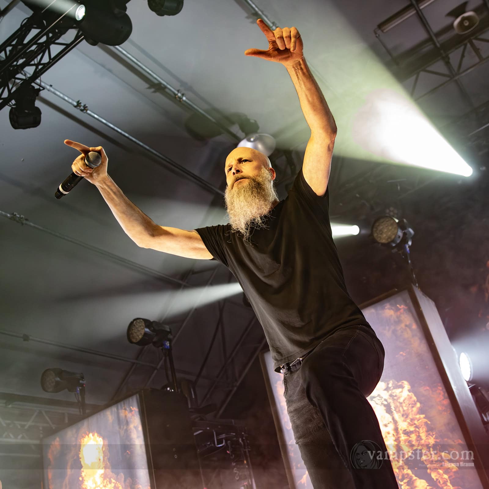 Als Quasi-Gegenentwurf zum Headliner präsentieren sich die beiden Musiker, welche in dichten Nebel und Stroboskop-Blitze gehüllt den Zuschauer:innen die meiste Zeit über ihr Profil präsentieren. Scheint die sich beständig füllende TonHalle während des ersten Showdrittels noch ein wenig mit dem direkten Ansatz MANTARs zu fremdeln, taut man zumindest im Zentrum mit jedem weiteren Stück auf. Nicht nur der Groove des abgezockten „Hang ’Em Low (So The Rats Can Get ‘Em“) ist unwiderstehlich, auch die trockenen Ansagen Hannos sorgen für den einen oder anderen Schmunzler.