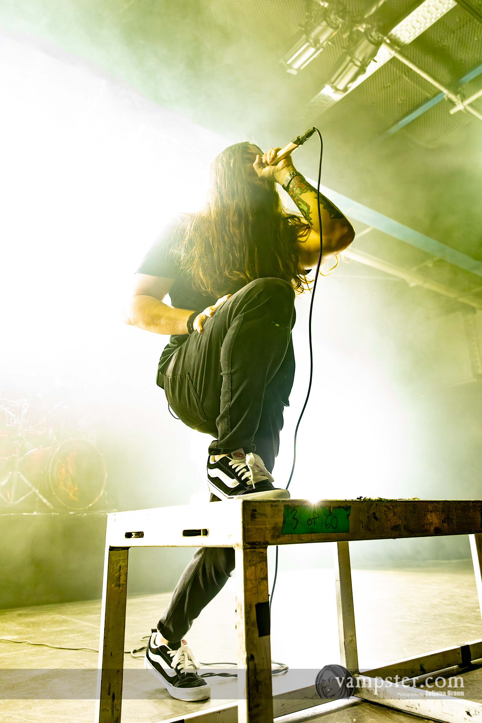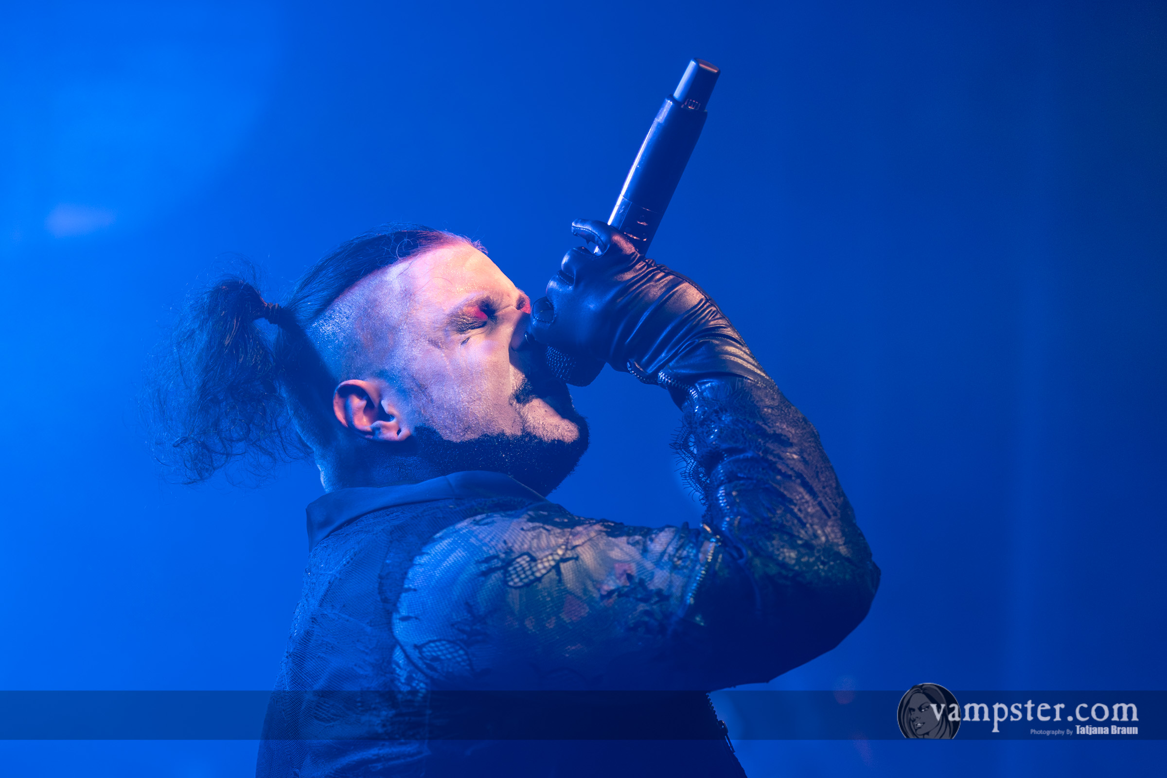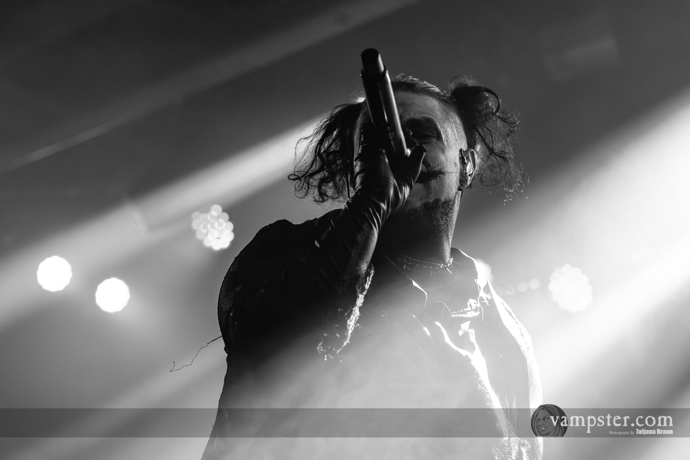 Tatsächlich ist die Stimmung in der Halle so gut, dass sich selbst Frontmann Sushi die Laune nicht verderben lässt: Denn irgendwie will die Technik heute nicht so recht mitspielen, wie er uns wissen lässt. Das In-Ear-Monitoring mache Probleme, weshalb der Shouter trotz Ersatzgerät im Folgenden immer wieder am Empfänger herumspielt. Dass die gesangliche Performance darunter kaum leidet, verdient Respekt – denn nur selten übertreiben es GHØSTKID wie in „S3X“ mit übermäßigen Backing Tracks.