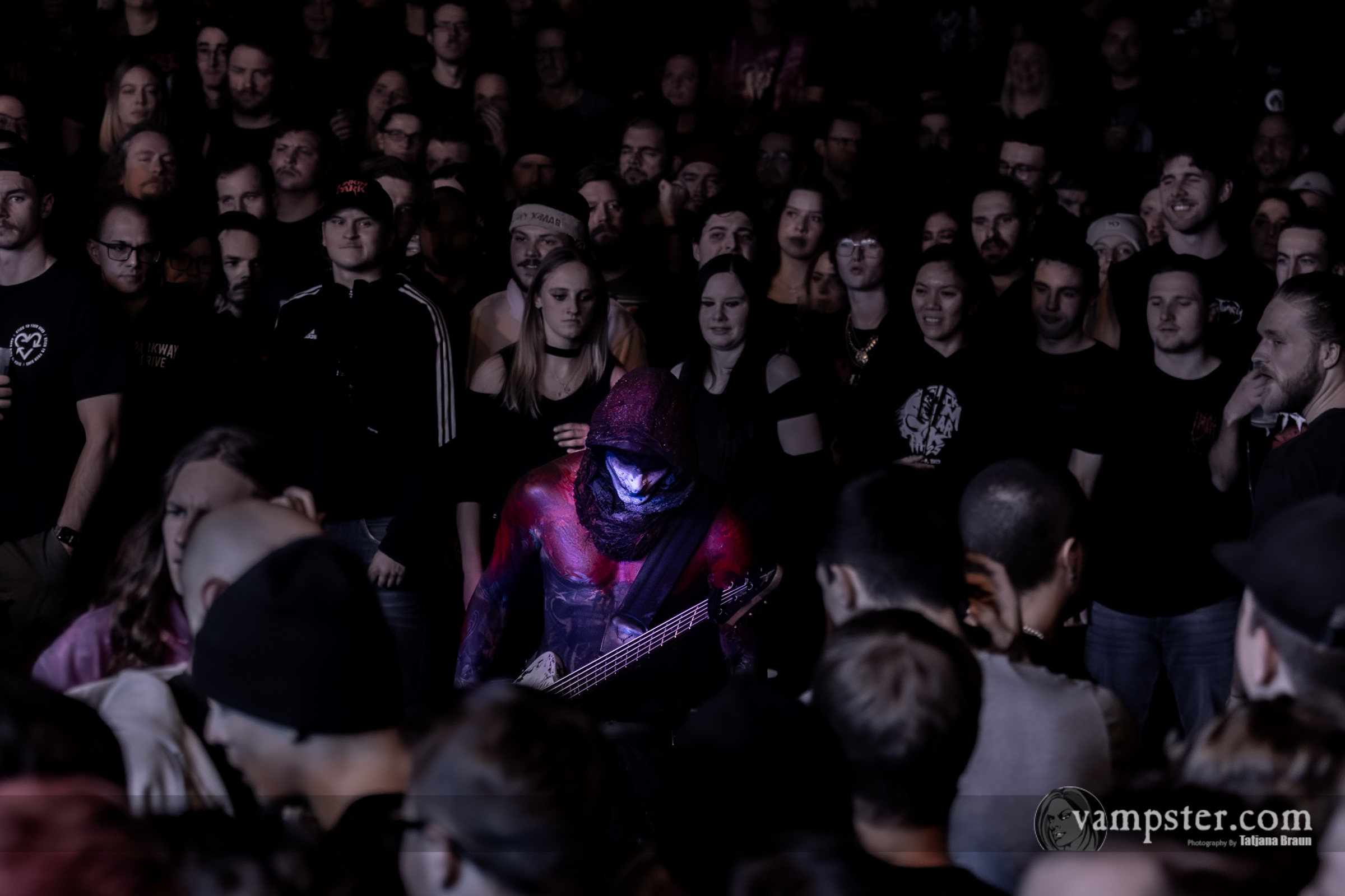 Deshalb können es sich GHØSTKID auch problemlos leisten, direkt zum Auftakt einen Hit wie „Supernova“ aufzutischen: Trotzdem wird es im Werk ab hier mit jeder Minute nur noch hitziger. Springen dürfen die Müncher:innen im anschließenden „Hollywood Suicide“, während „Crown“ abermals zur Spielwiese für Bassist Stanni wird: Ein Sprung über den Wellenbrecher und schon ist der Mann mit dem gruseligen Make-up selbst das Zentrum des unermüdlichen Circle Pits.