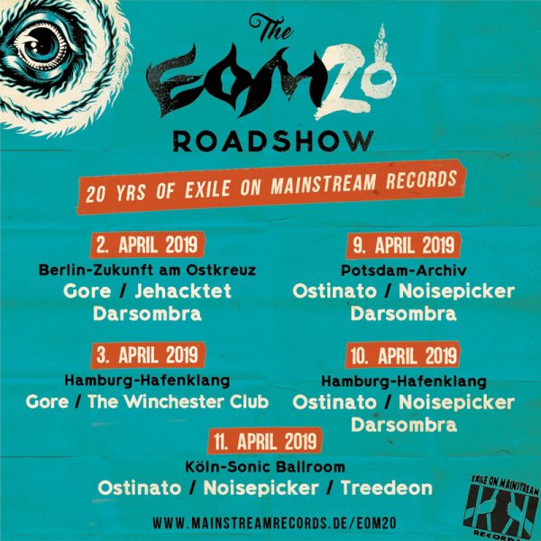 Exile On Mainstream-Betreiber Andreas „Kanzler“ Kohl“ sagt dazu: „20 Jahre Exile On Mainstream! Wer hätte das gedacht? Als wir am 1.April 1999 das Gewerbe anmeldeten, war die Idee eigentlich nur, ein paar Singles befreundeter Bands auf Vinyl zu veröffentlichen – in einer Zeit, als Vinyl ein hoffnungslos anachronistisches Überbleibsel aus einer vergangenen Zeit war. Natürlich kam es anders. Das alles hätten wir niemals geschafft ohne all die fantastischen Künstler, mit denen wir in diesen 20 Jahren arbeiten durften, und die uns immer wieder angespornt haben, mehr zu tun als ‘nur’ Platten zu veröffentlichen. Über die Jahre ist Exile On Mainstream eine Familie geworden, die neben uns, unseren Künstlern auch ganz besonders unser Publikum einschließt. Ihr Fans da draußen: seht uns in tiefer Verneigung vor eurer Unterstützung, eurer Begeisterung und eurem exzellenten Musikgeschmack. Ich denke, wir haben uns alle ein wenig Selbstbeweihräucherung verdient.