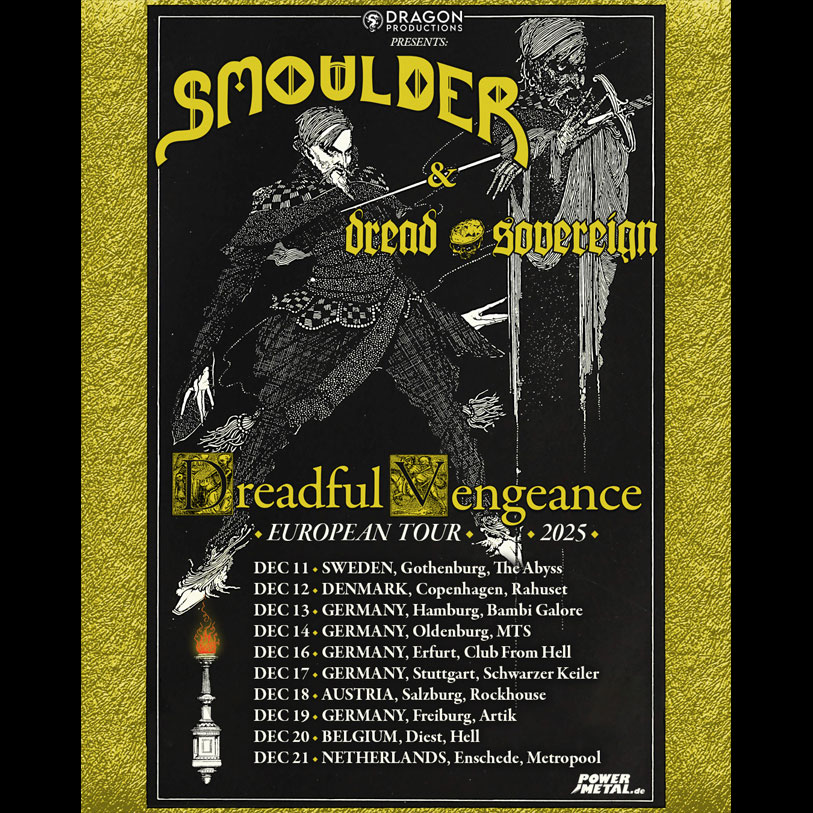 Zum Jahresende gibt’s nochmal die Möglichkeit, SMOULDER live zu sehen. Die Dreadful Vengeance European Tour 2025 startet am 11. Dezember 2025.