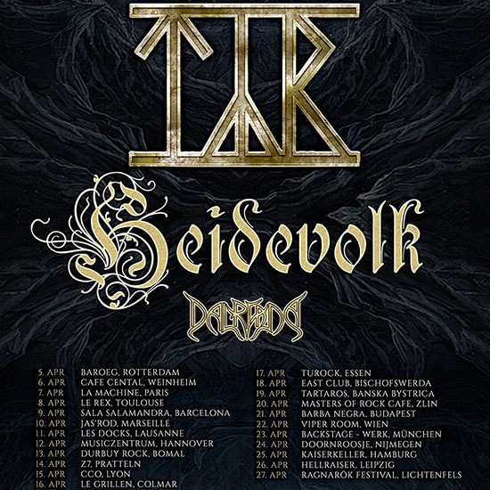 Im April sind TYR zusammen mit HEIDEVOLK und DALRIADA auf Tour, die „Tour From Hel“ macht insgesamt acht Mal Halt in Deutschland.